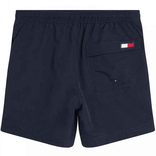 Boys Logo Mid Length Drawstring Swim Shorts, Desert Sky