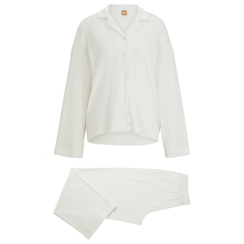 Elegant Ribbed Organic Cotton Pyjama Set, Off-White