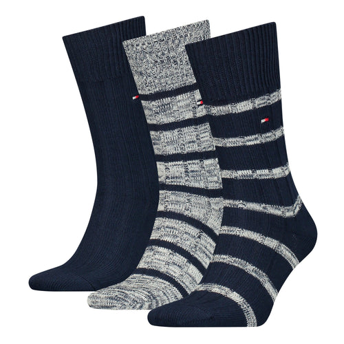 3-Pack Slub Mouline Stripe Boot Socks Gift Box, Navy Combo