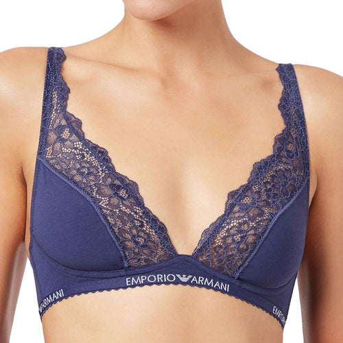 Floral Lace Stretch Cotton Bralette, Indigo Blue