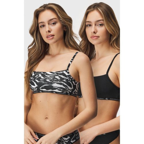 2-Pack CK 1996 Unlined String Bralettes, Black / Tiger Print