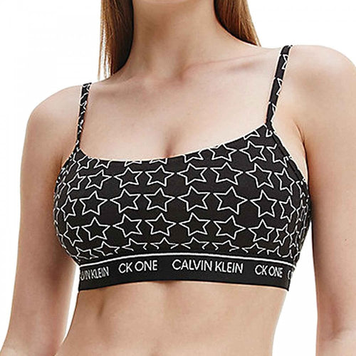 CK One Cotton Modal Blend String Bralette, Outline Star Print/Black