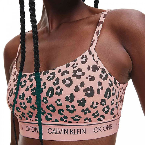 CK One Cotton Modal Blend String Bralette, Stephen Leopard Print/Peach Melba