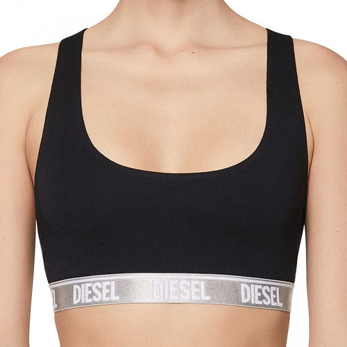 Cotton Modal Stretch Cat Logo Racerback Bra, Black / Silver