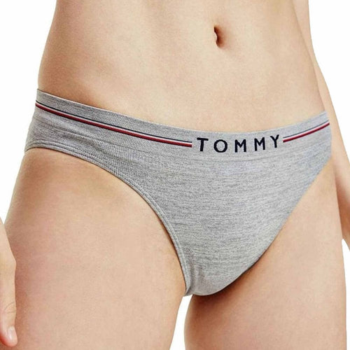 Nahtloser Bikinislip mit Logo, Mittelgrau meliert