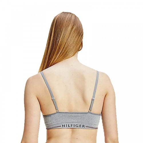 Nahtloses, ungefüttertes Bralette mit Logo, Mittelgrau meliert