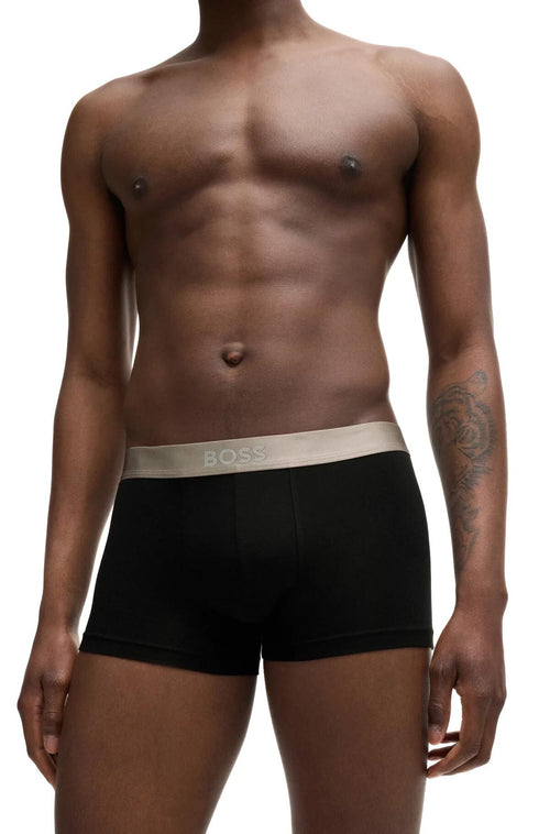3-Pack Power Logo Boxer Trunks, Black w/ blue/beige/orange