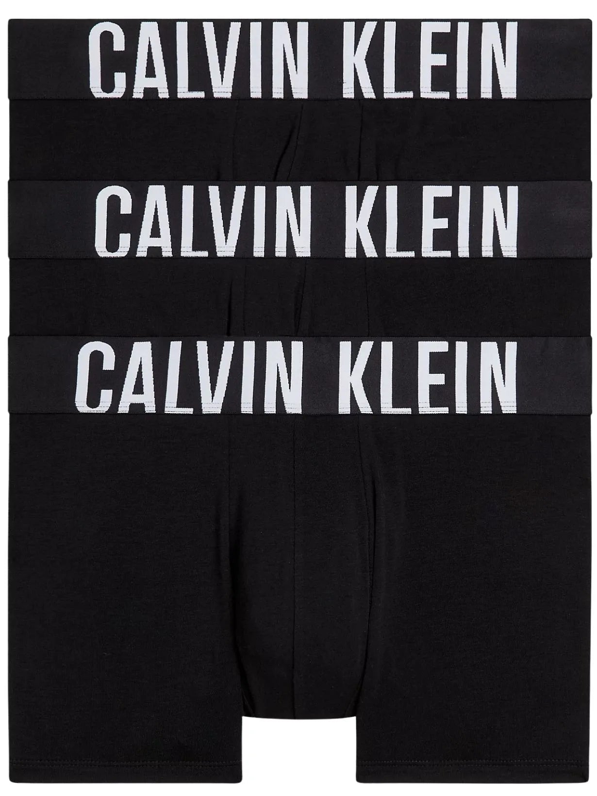 - Calvin Klein Intense Power 3-Pack Boxer Trunks for Men, in Black with striking white logo design