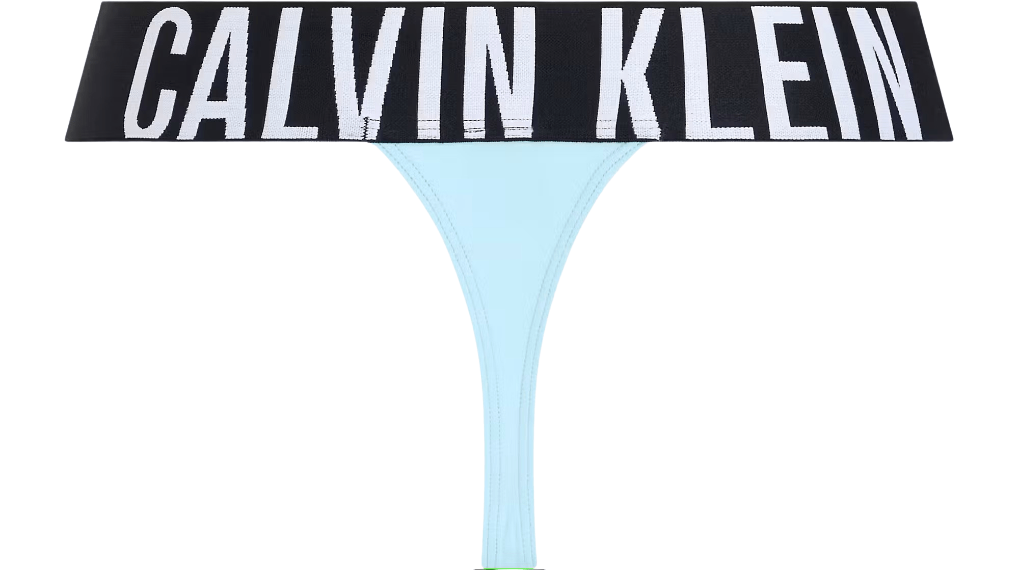 Unleash sleek confidence with the Calvin Klein Intense Power High Leg thong in cool Ether Blue.  Bold and sleek, designed to flatter,