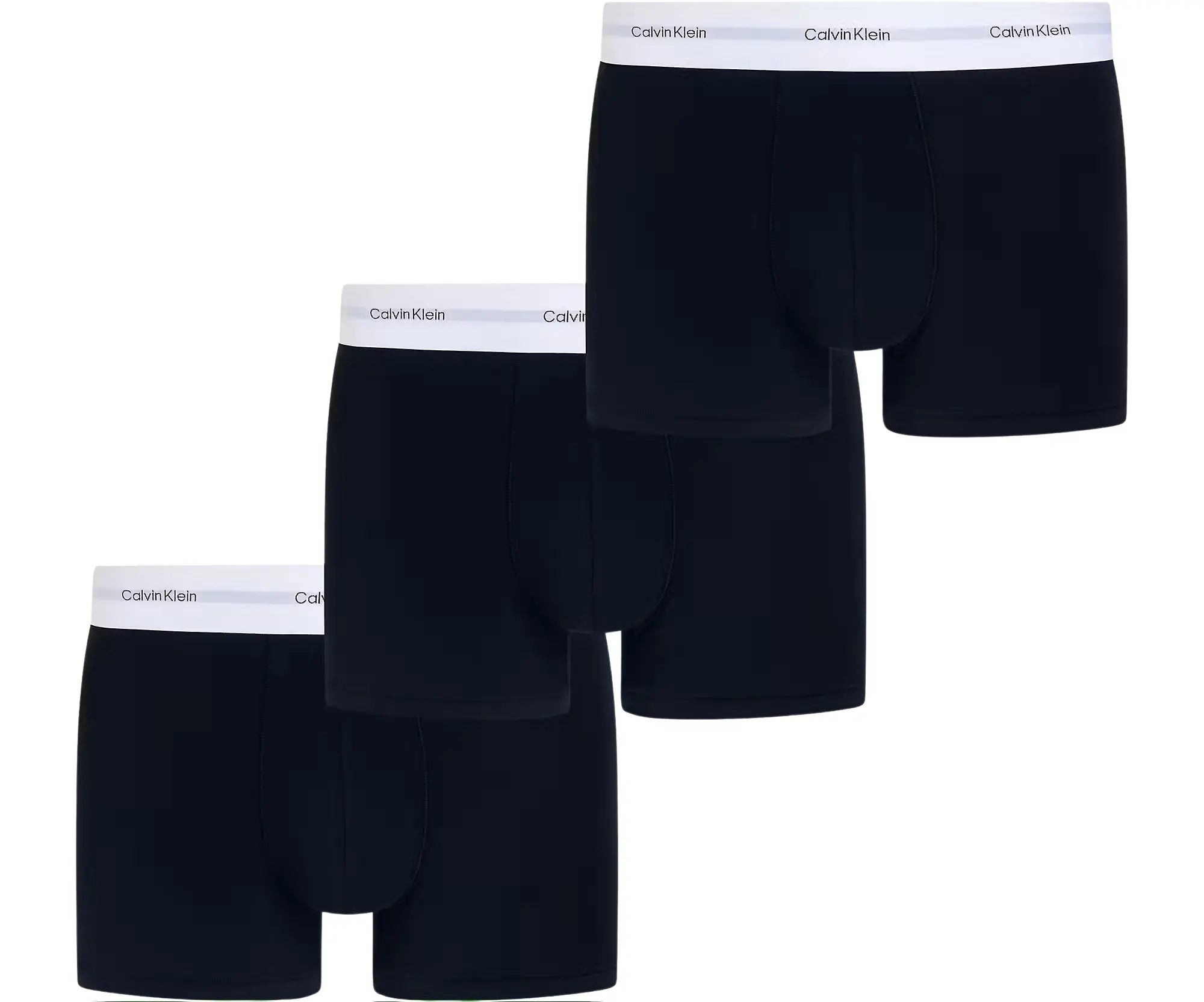 Calvin Klein 3-Pack Cotton Modal Boxer Trunks in Black with White waistband